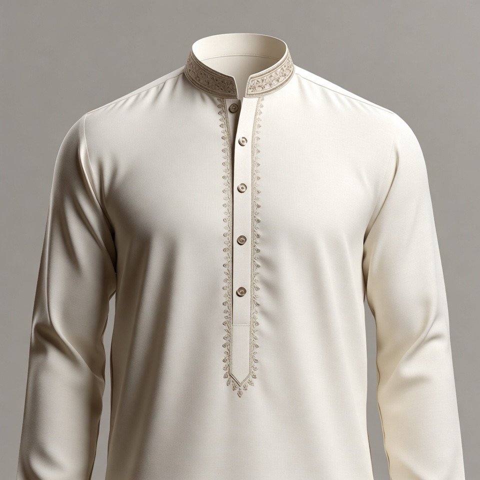 Enhance your style with this premium cream-colored men’s Panjabi, designed for comfort, elegance, and cultural sophistication. Crafted from soft breathable fabric, it features a beautifully detailed collar and placket with subtle embroidery work that adds a touch of luxury without being overwhelming. The smooth finish and refined texture make it perfect for festive wear, Jummah prayer, occasions, family gatherings, or everyday traditional styling.